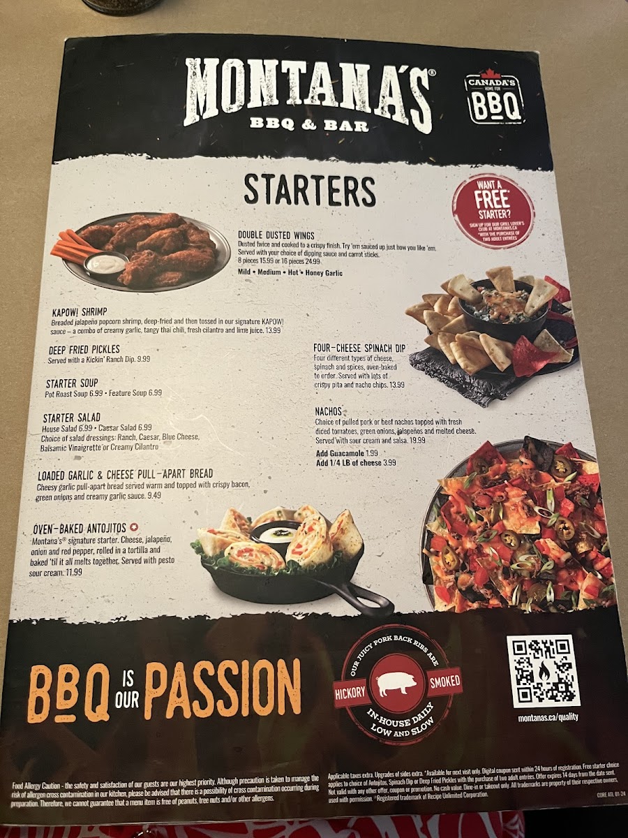 The service was great and friendly, and the restaurant was quite clean along with the floors. We had ordered the lobster spinach dip with pita chips and tortilla chips, which I highly recommend. The food had arrived rather quickly to our table, it wasn't overly busy at the time we went - It was around 4pm. Each meal was well made, delicious and the portion sizes were great as well however I would say for cost, a family of four came to 150. All that being said, Montana's is always a great place to go with family as the atmosphere is really fun and inviting.