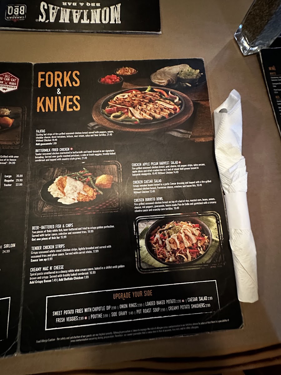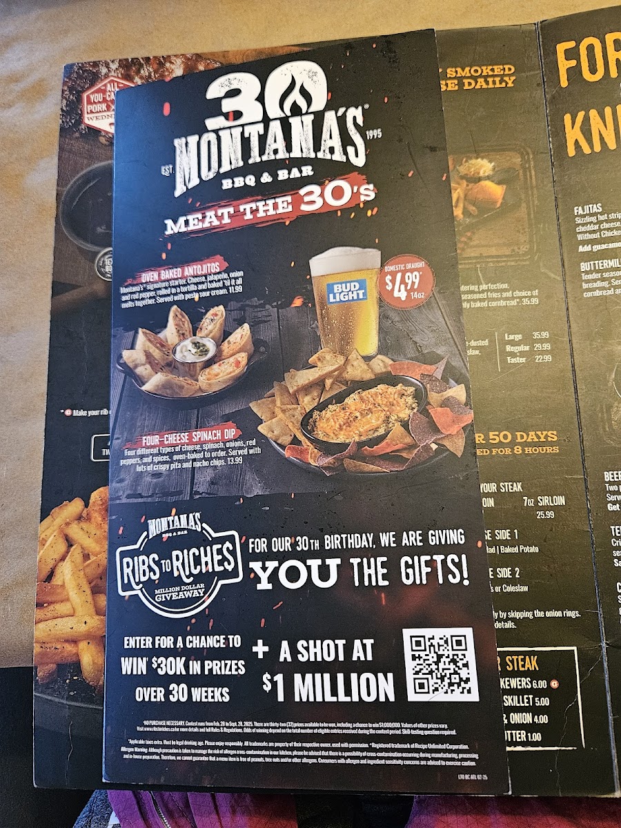 I had a great experience at Montana's the other day. The hostess was welcoming and the waitress I had was friendly and attentive. I had the lunch special with pot roast soup, Caesar salad and 1/2 pulled pork sandwich and it was delicious. I also tried the cookie crumble cheesecake for dessert and it was to die for!